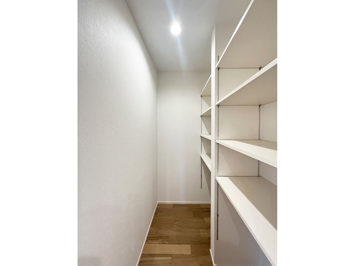広々パントリーや、室内物干しを備えた脱衣兼ランドリーなど、家事ラクを叶えたプラン。ユーティリティースペースはリビング学習や在宅ワークにピッタリ。