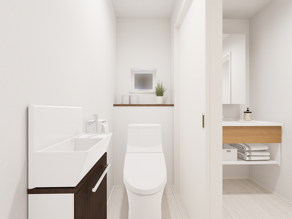 なお、外観形状の細部、外構イメージ、設備機器、電柱、電線等につきましては実際は異なる場合がございます。または表現しておりません。