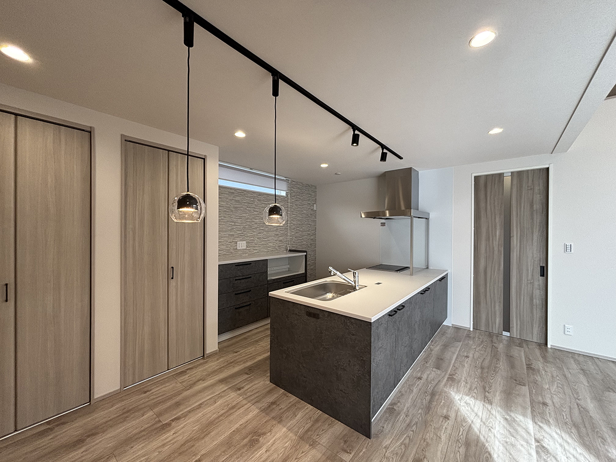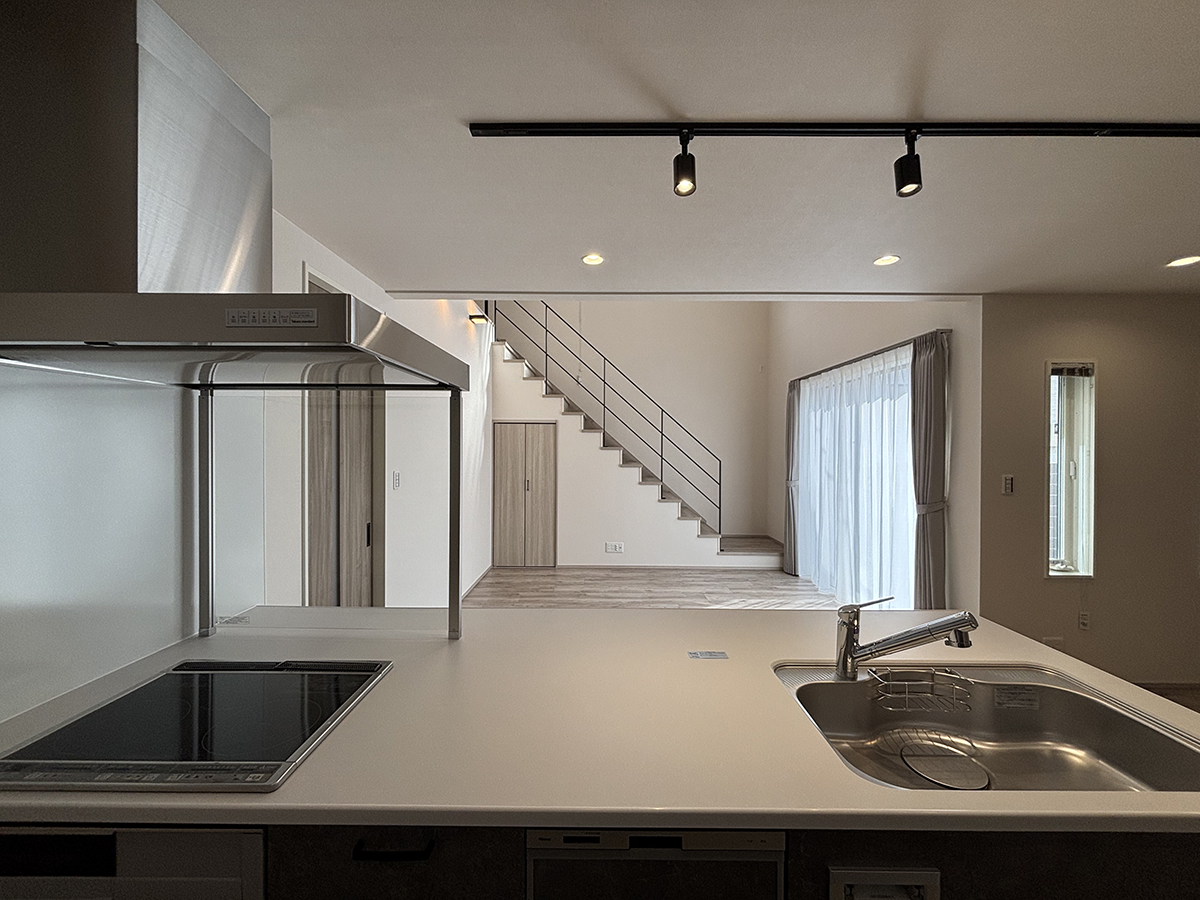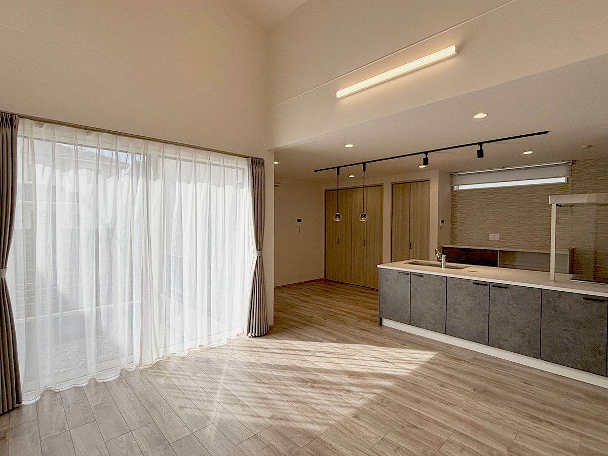 吹き抜けリビング、フルフラットキッチン、洗面兼ランドリー、多目的に使えるロフトなど充実のプランです。